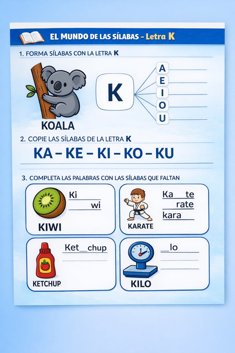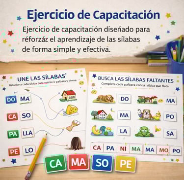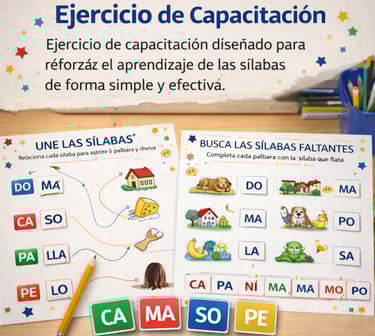 Ejercicio de capacitación diseñado para reforzar el aprendizaje de las sílabas de forma simple y efectiva.